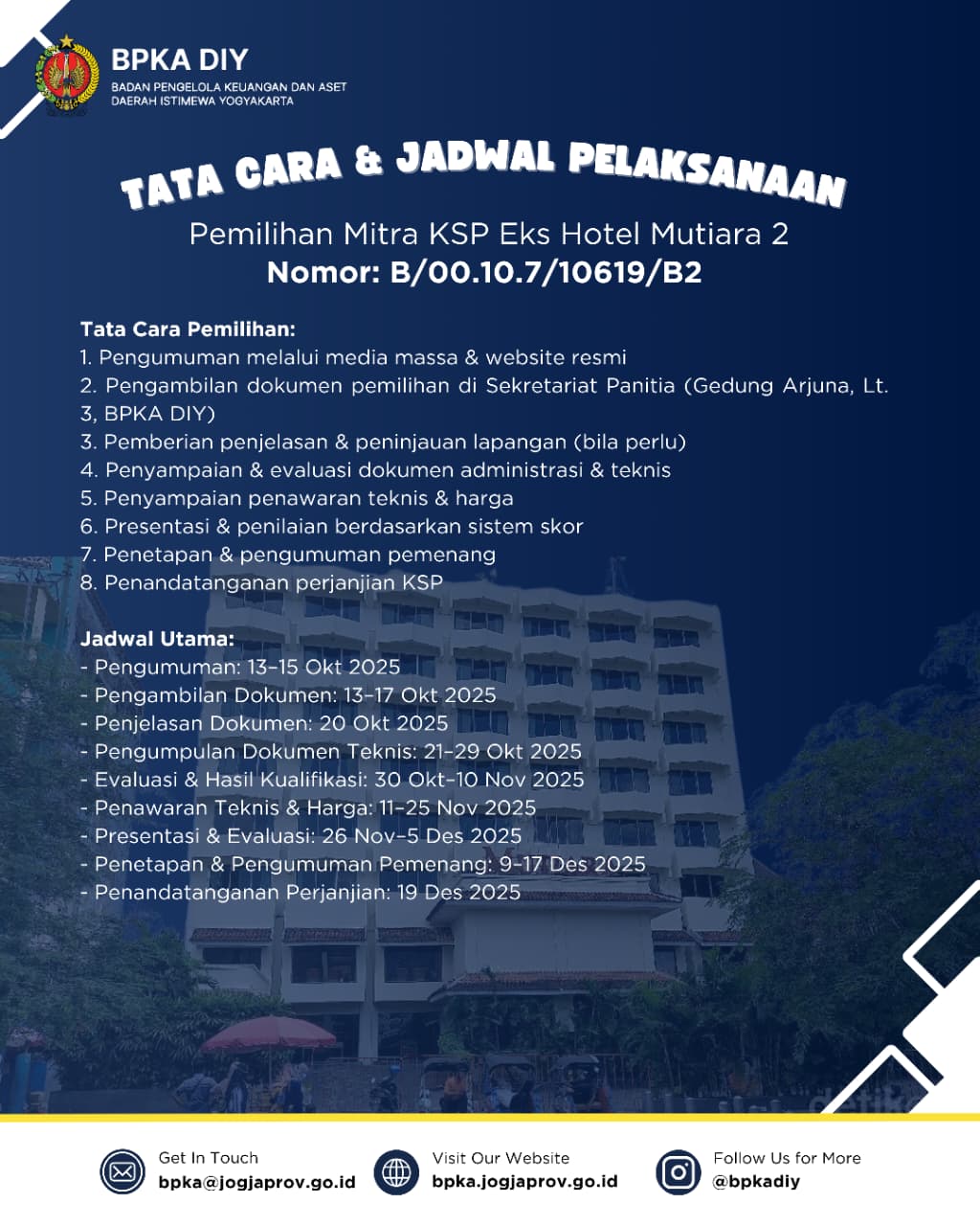 Pengumuman Pemilihan Mitra Kerja Sama Pemanfaatan BMD berupa Tanah dan Bangunan Eks Hotel Mutiara 2