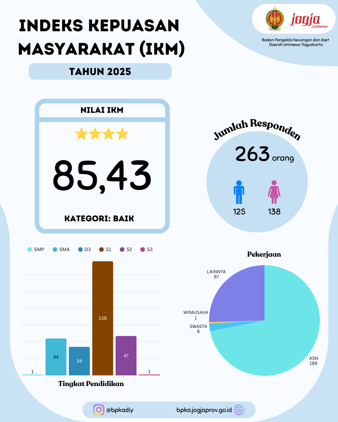 Indeks Kepuasan Masyarakat (IKM) BPKA DIY Tahun 2025 capai nilai BAIK!
