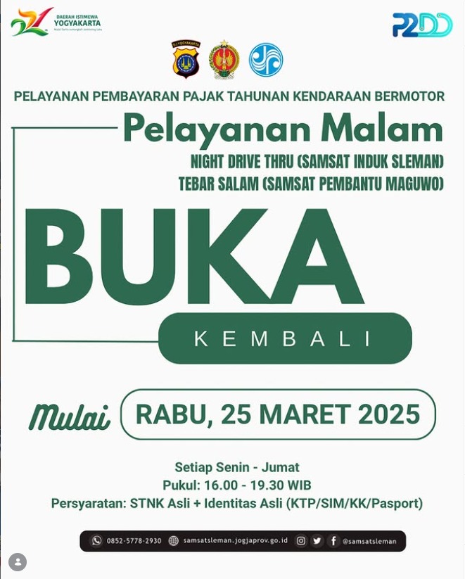 Layanan Malam di Samsat Sleman Buka Kembali!