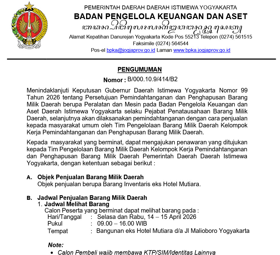 Info Lelang BPKA DIY